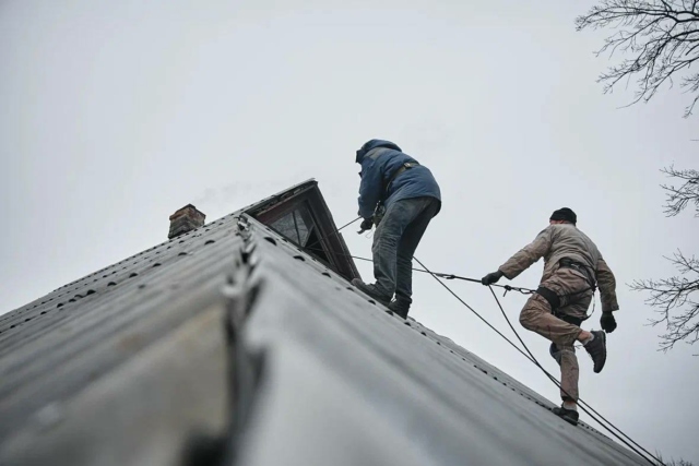 Зимняя атмосфера и добровольцы-ремонтники Патриаршей гуманитарной миссии